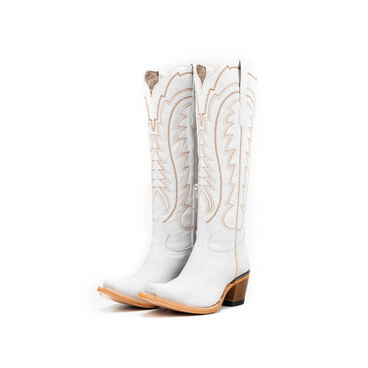 White Snip-Toe Embroidery Half-Zip Knee High Classic Cowgirl Boots