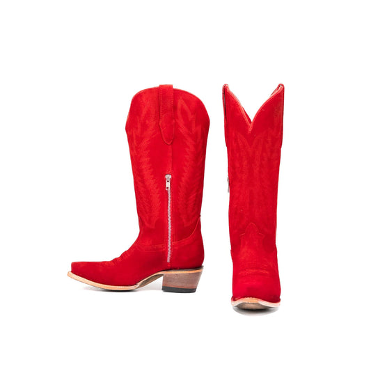Red Faux Suede Snip-Toe Embroidery Half-Zip Knee High Cowgirl BootsRegular price $139.00 USDRegular priceUnit price / per-