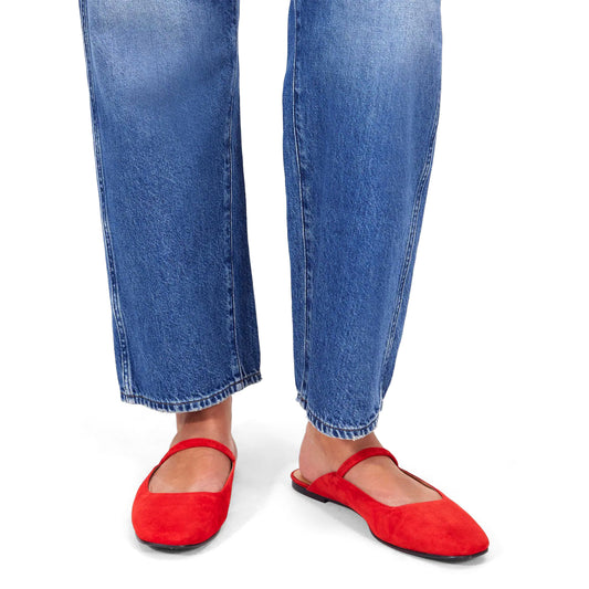 Red Faux Suede Square-Toe Bridge Strap Slip-On FlatsRegular price $89.00 USDRegular priceUnit price / per-