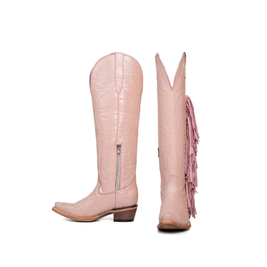 Pink Snip-Toe Embroidery Side Fringe Half-Zip Knee High Cowgirl BootsRegular price $149.00 USDRegular priceUnit price / per-