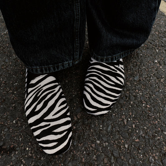 Zebra Print Pony Hair Square-Toe Classic Flats