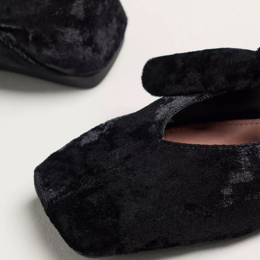 Black Full Plush Square-Toe Bridge Strap Ballet Flats