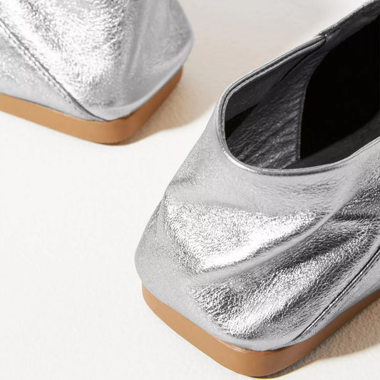 Metallic Sliver Square-Toe Center Lace-Up Ballet Flats