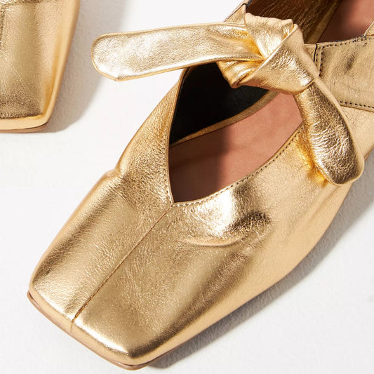 Metallic Gold Square-Toe Center Lace-Up Ballet Flats