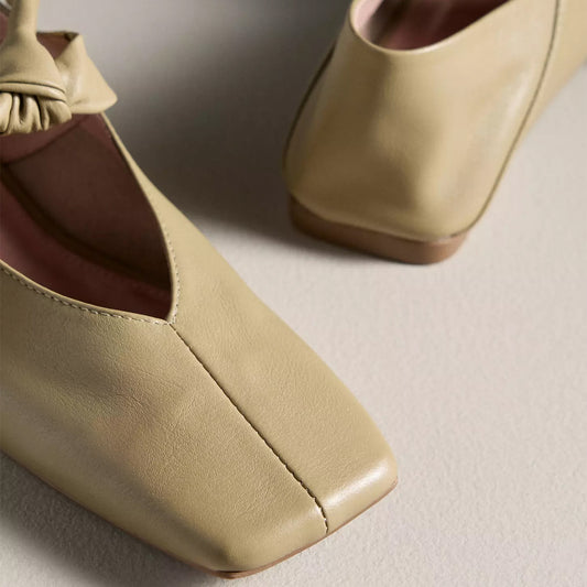 Olive Square-Toe Center Lace-Up Ballet Flats