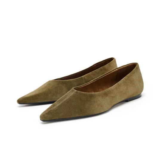 Dark Green Faux Suede Pointed-Toe Simple Slip-on Ballet Flats