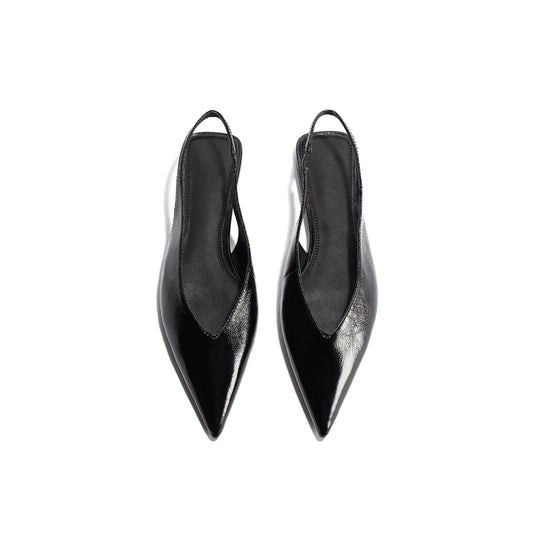 Patent Black Pointed-Toe Front Double Straps Slingback Flats