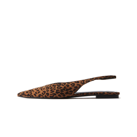 Leopard Faux Suede Pointed-Toe Slingback Flats