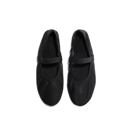 Black Mesh Round-Toe Bridge Strap Ballet Flats