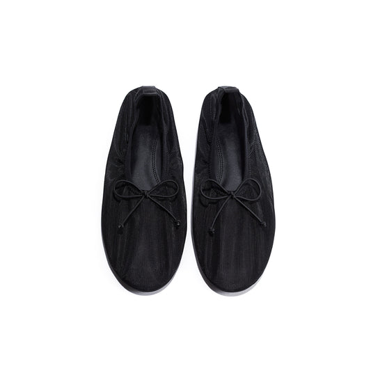 Black Mesh Round-Toe Classic Front Bow Ballet Flats