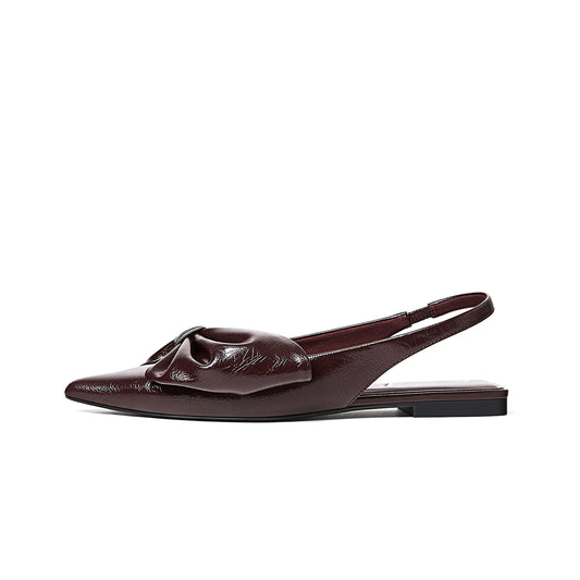 Patent Burgundy Pointed-Toe Front Big Bow Slingback Flats