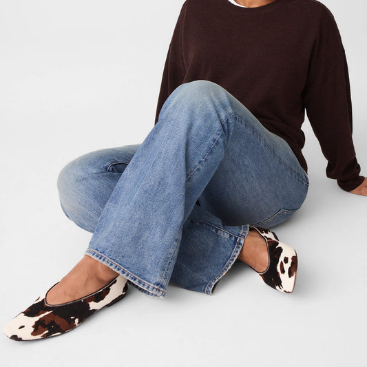 Cow Print Pony Hair Vegan Leather Square-Toe Ballet Flats