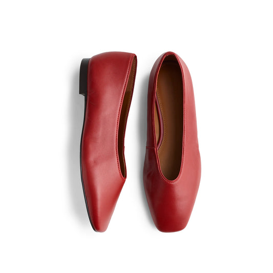 Red Vegan Leather Square-Toe Ballet Flats