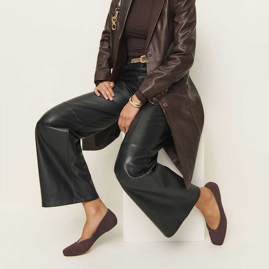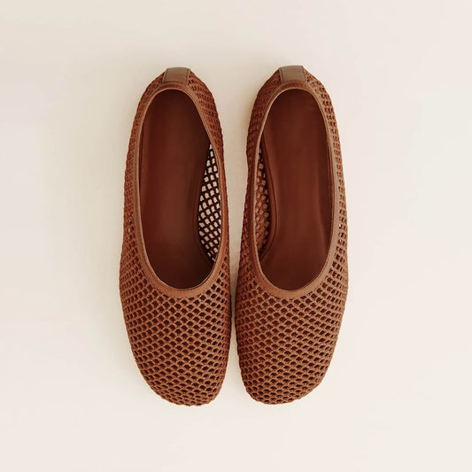 Brown Mesh Vegan Leather Square-Toe Classic Ballet Slip-On Flats