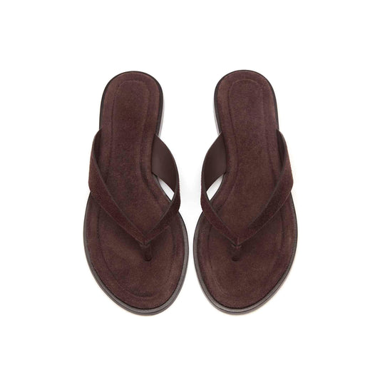 Coffee Faux Suede Round-Toe Flip-Flop Slip-On Sandals Flats