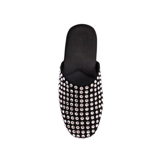 Black Faux Suede Round-Toe Embellished Slip-on Backless Ballet Flats