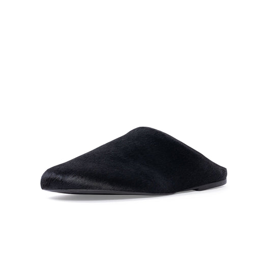 Black Pony Hair Round-Toe Slip-on Backless Ballet Flats
