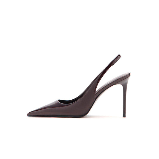 Patent Burgundy Pointed-Toe Simple Slingback High Heels