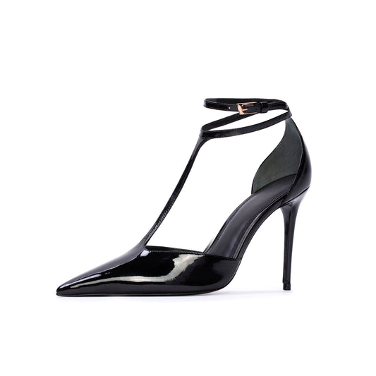 Patent Black Pointed Toe Ankle Strap With Buckle High Stiletto Heel