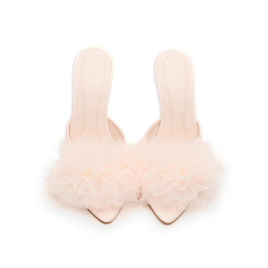 Nude Translucent Upper Round-Toe Backless High Stiletto Heels