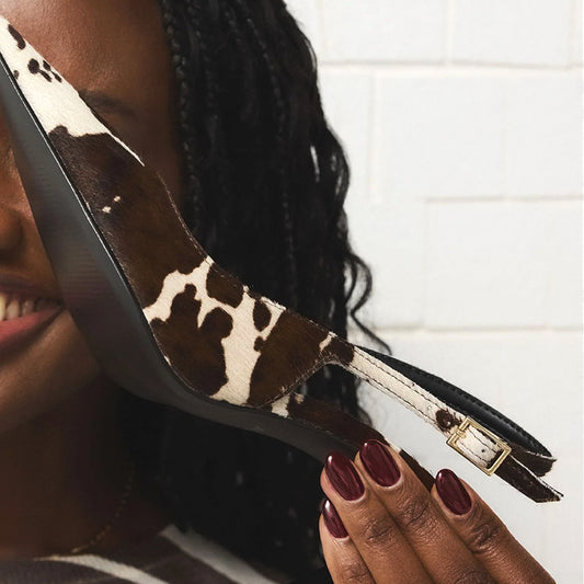 Cow Print Pony Hair Pointed-Toe Slingback Slip-On High Heels