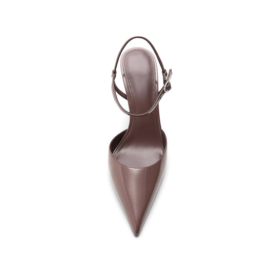 Patent Brown Pointed-Toe Slingback Ankle Strap Stiletto High Heels