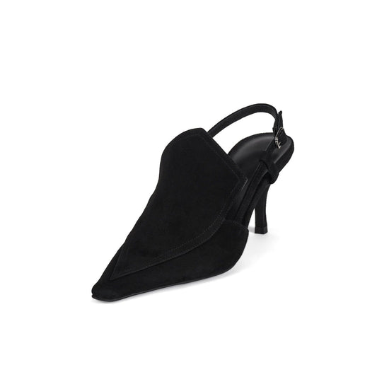 Black Faux Suede Pointed-Toe Slingback Kitten Heels