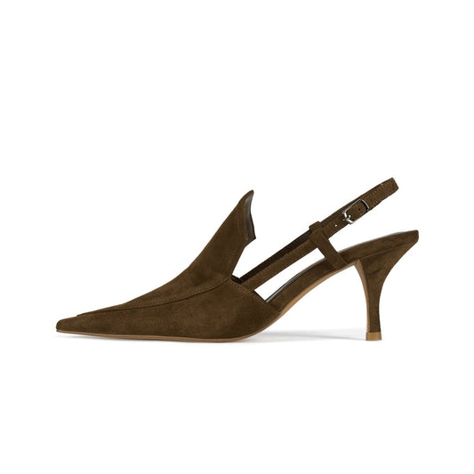 Brown Faux Suede Pointed-Toe Slingback Kitten Heels