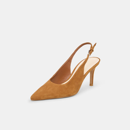 Brown Faux Suede Classic Pointed-Toe Buckle Slingback Kitten Heels