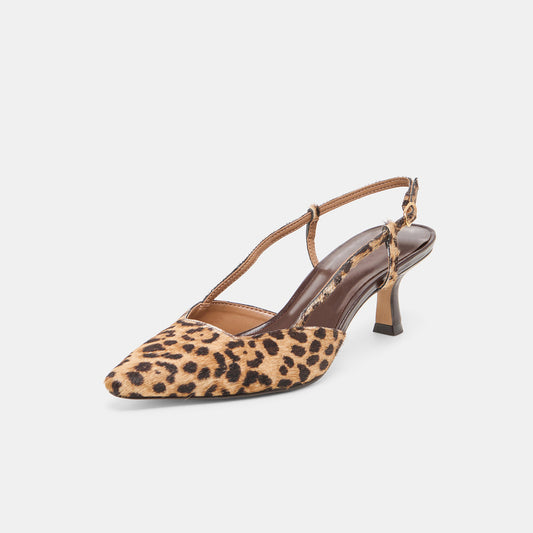 Leopard Pony Hair Print Pointed-Toe Classic Slip-On Slingback Kitten Heels