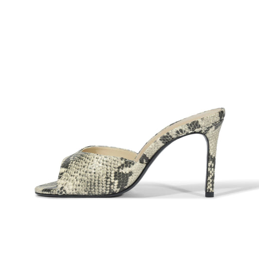Snakeskin Print Vegan Leather Round-Toe Slip-On Sandal High Heels
