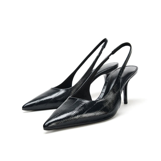 Black Pointed-Toe Slingback Simple Kitten Heels