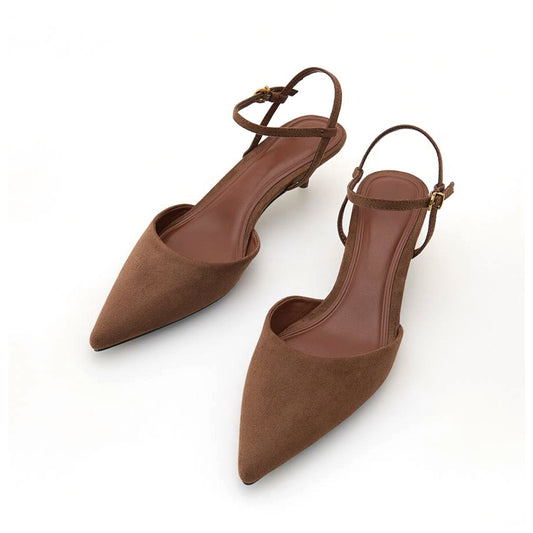 Brown Faux Suede Pointed-Toe Classic Ankle Strap Kitten Heels