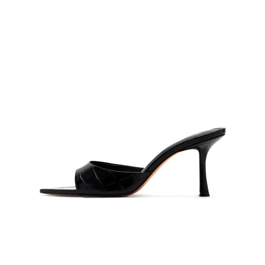 Black Stone Print Pointed-Toe Slip-On High Heels