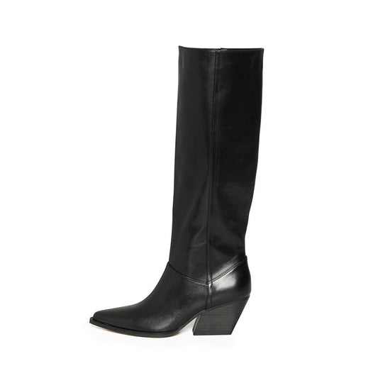 Black Pointed-Toe Half-Zip Sleek Knee High Cowgirl Boots