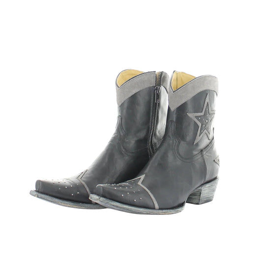 Black Snip-Toe Studded And Star Applique Ankle Cowgirl Boots