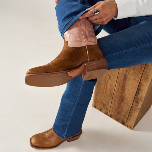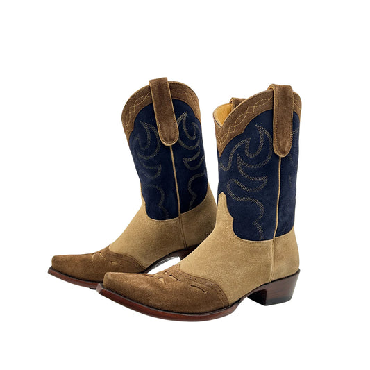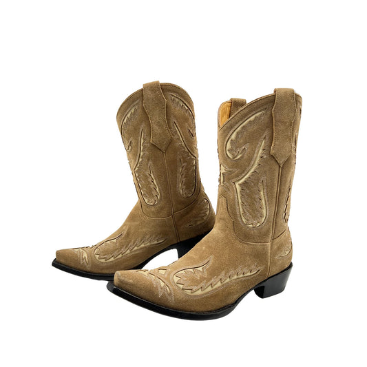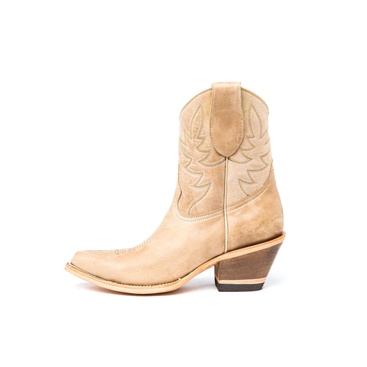 Sand Almond-Toe Embroidery Ankle Cowgirl Boots