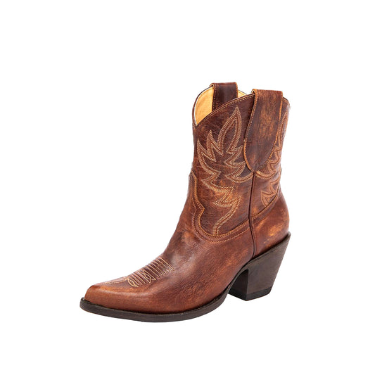 Brown Almond-Toe Embroidery Ankle Cowgirl Boots