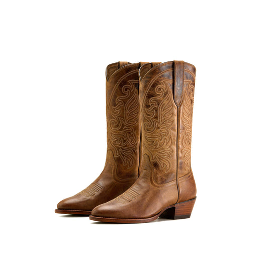 Tan Round-Toe Classic Embroidery Mid Calf Cowgirl Boots