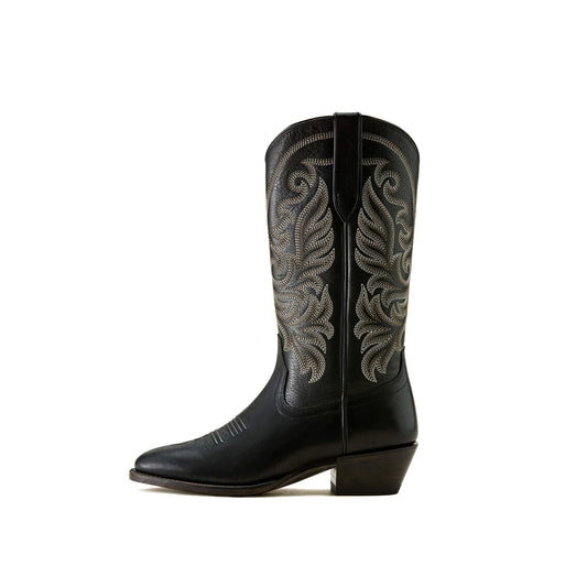 Black Round-Toe Classic Embroidery Mid Calf Cowgirl Boots