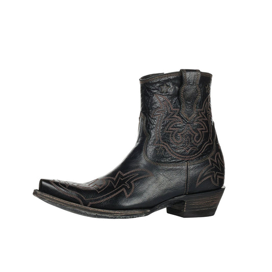 Black Snip-Toe Chic Embroidery Full-Zip Western Cowgirl Ankle Boots