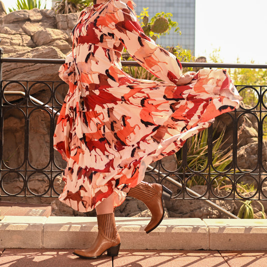 Red Snip-Toe Chic Inlay Mid Calf Classic Cowgirl Boots