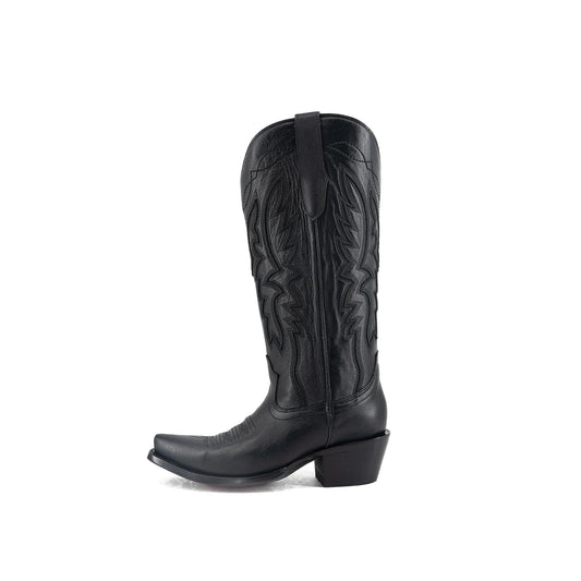 Blacked Bone Almond-Toe Embroidery Wide Calf Knee High Cowgirl Boots