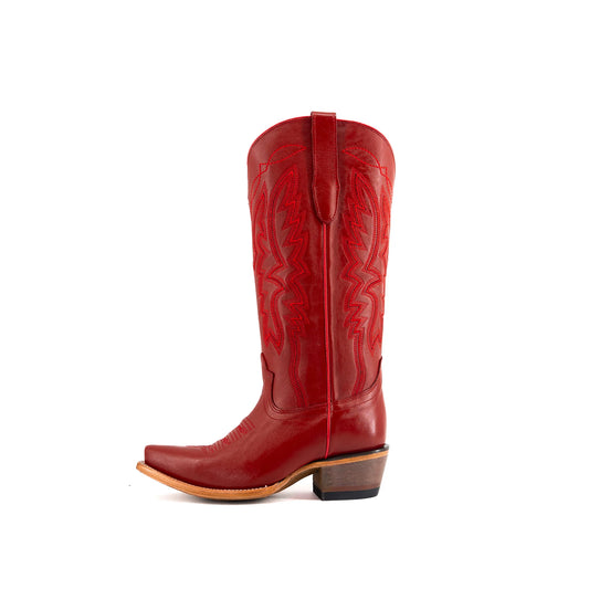 Wine Red Snip-Toe Half-Zip Double Embroidery Knee High Cowgirl Boots