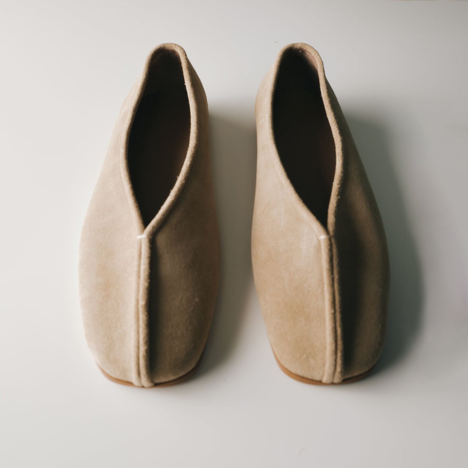 Beige Faux Suede Square-Toe Ballet Classic Flats.