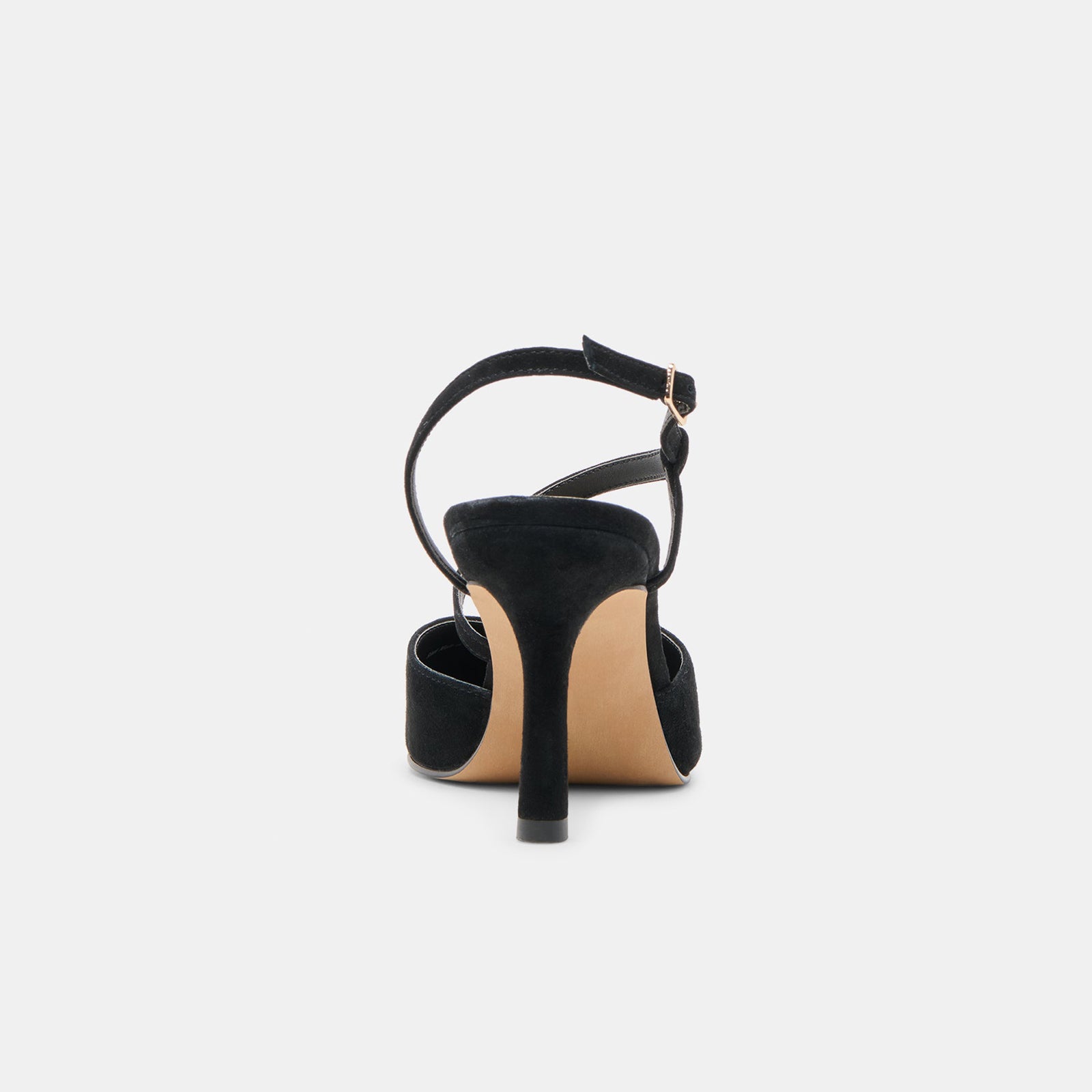 Black Faux Suede Pointed-Toe S-Shaped Strap High Heels