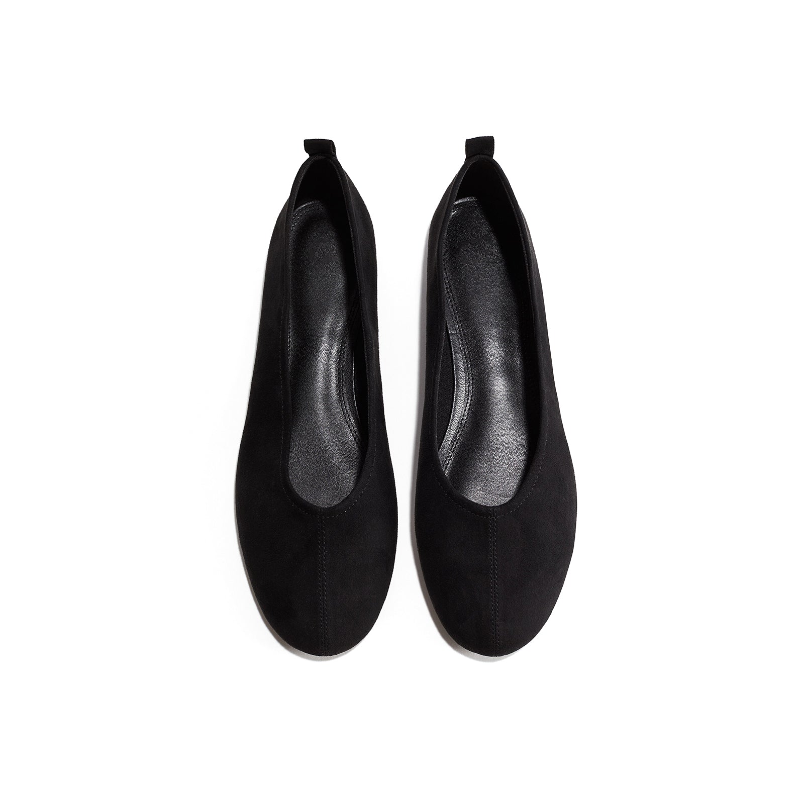 Black Faux Suede Round-Toe Ballet Chic Flats.