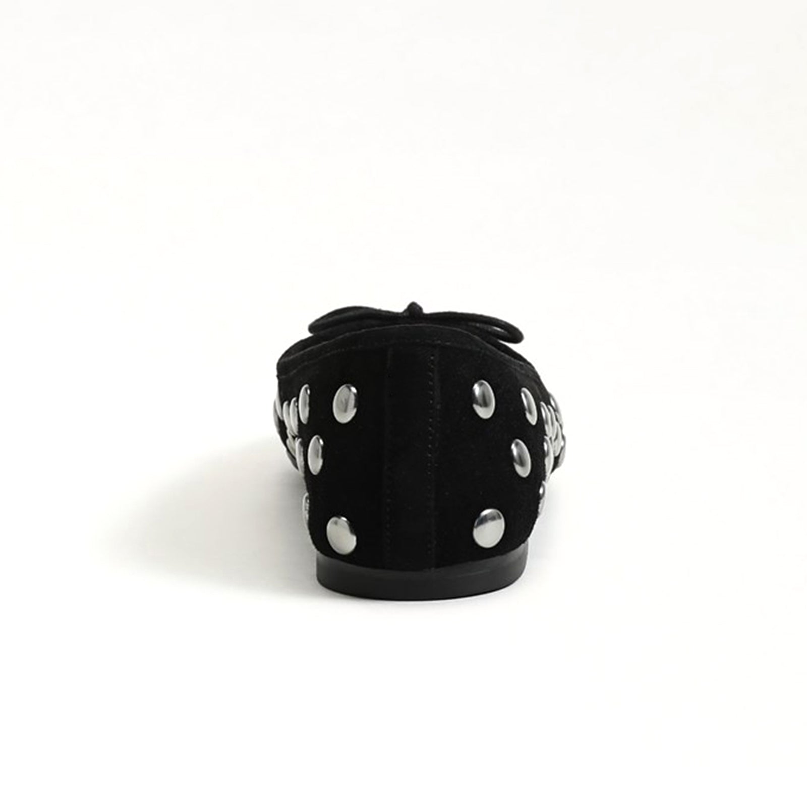Black Faux Suede Square-Toe Studded Slip-On Flats.