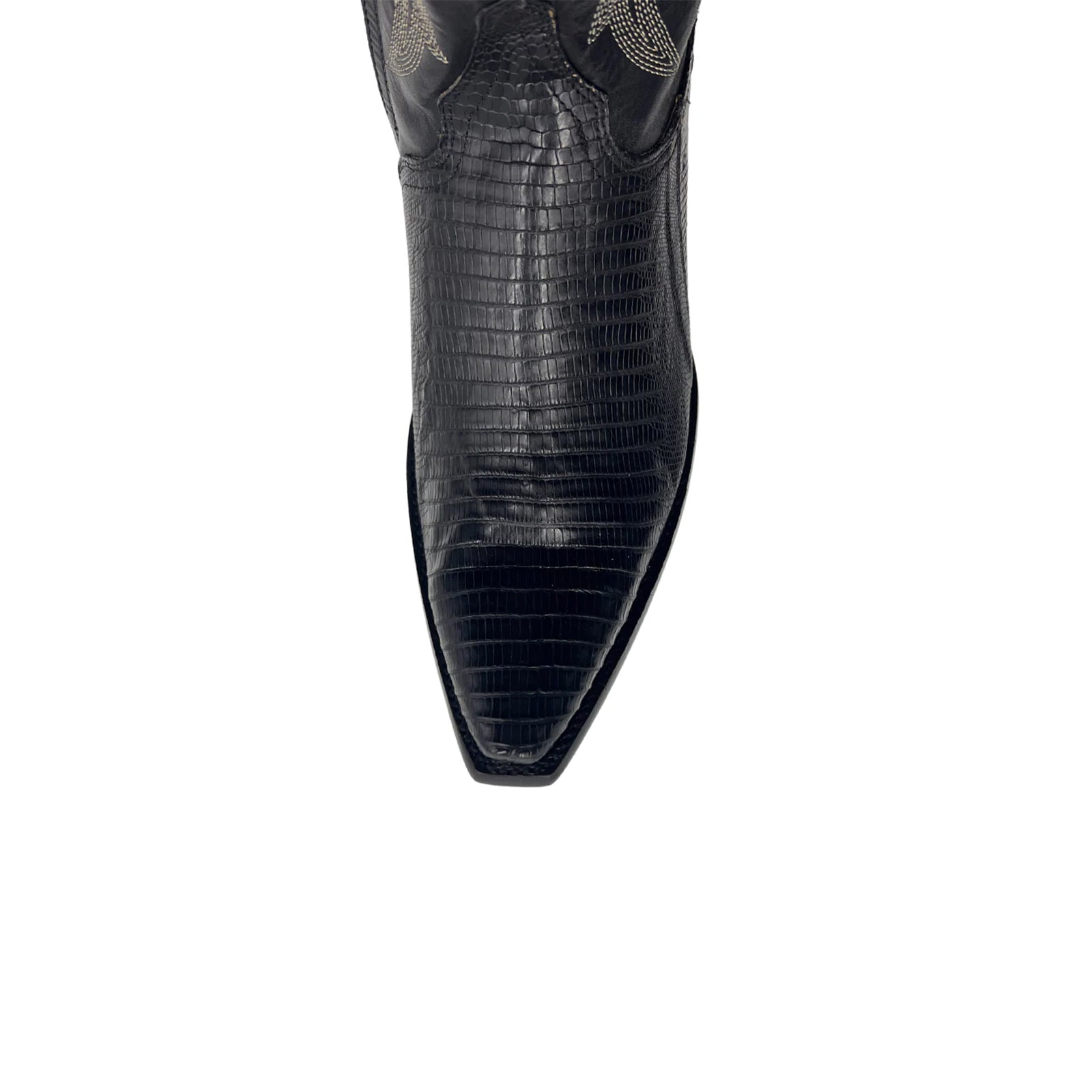 Black Lizard-Patterned Snip-Toe Embroidery Half-Zip Knee High Cowgirl Boots.
