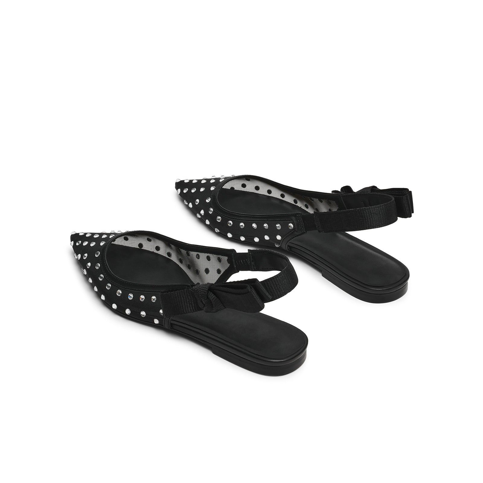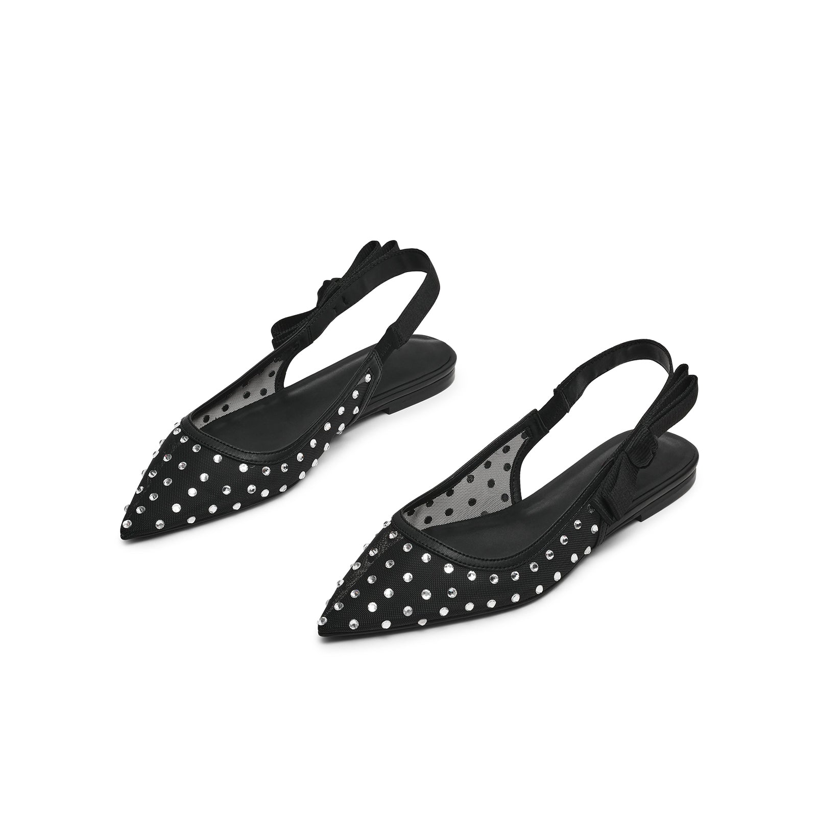 Black Mesh Pointed-Toe Rhinestones And Slingback With Bow Flats.